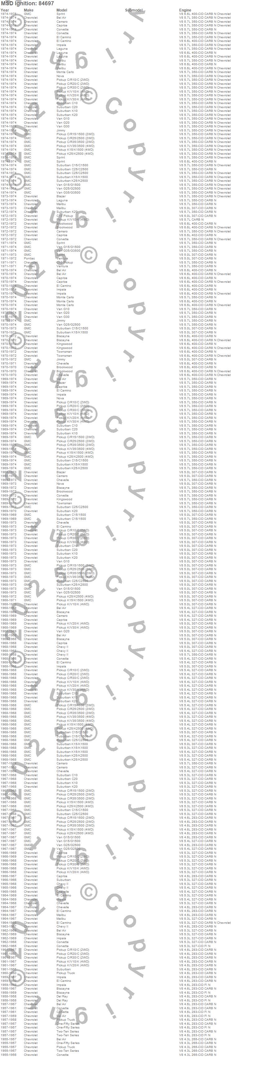 Below is an abbreviated list of applications for the Crank Trigger Distributor.
