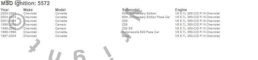 Below is an abbreviated list of applications for the Street Fire Spark Plug Wire Set.