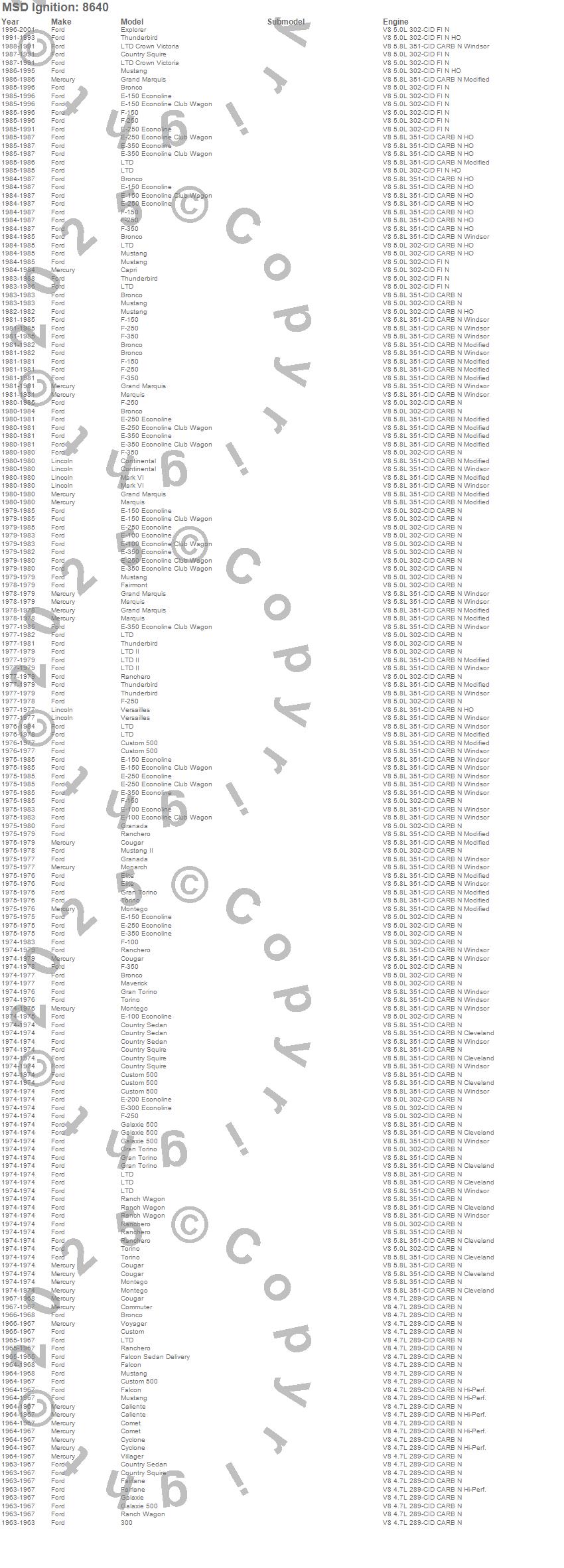 300, Bronco, Caliente, Capri, Comet, Commuter, Continental, Cougar, Country Sedan, Country Squire, Custom, Custom 500, Cyclone, E-100 Econoline, E-100 Econoline Club Wagon, E-150 Econoline, E-150 Econoline Club Wagon, E-200 Econoline, E-250 Econoline, E-250 Econoline Club Wagon