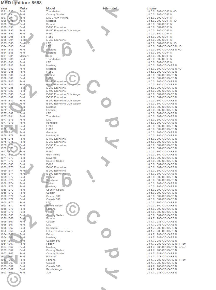300, Bronco, Capri, Country Sedan, Country Squire, Custom, Custom 500, E-100 Econoline, E-100 Econoline Club Wagon, E-150 Econoline, E-150 Econoline Club Wagon, E-200 Econoline, E-250 Econoline, E-250 Econoline Club Wagon, E-300 Econoline, E-350 Econoline, E-350 Econoline Club Wagon, F-100, F-150, F-250