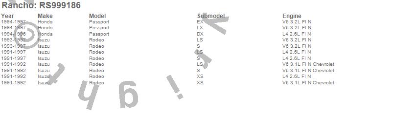 Rancho - Shock Absorber P/N RS999186 Features: