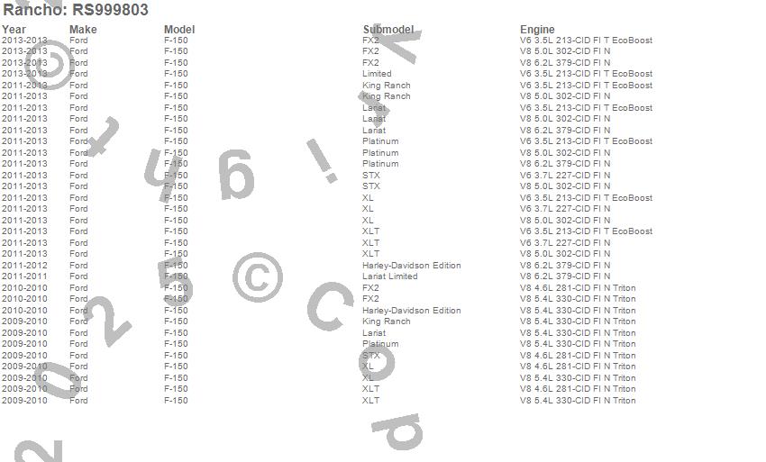 Below is an abbreviated list of applications for the RS9000XL Series Suspension Strut Assembly.