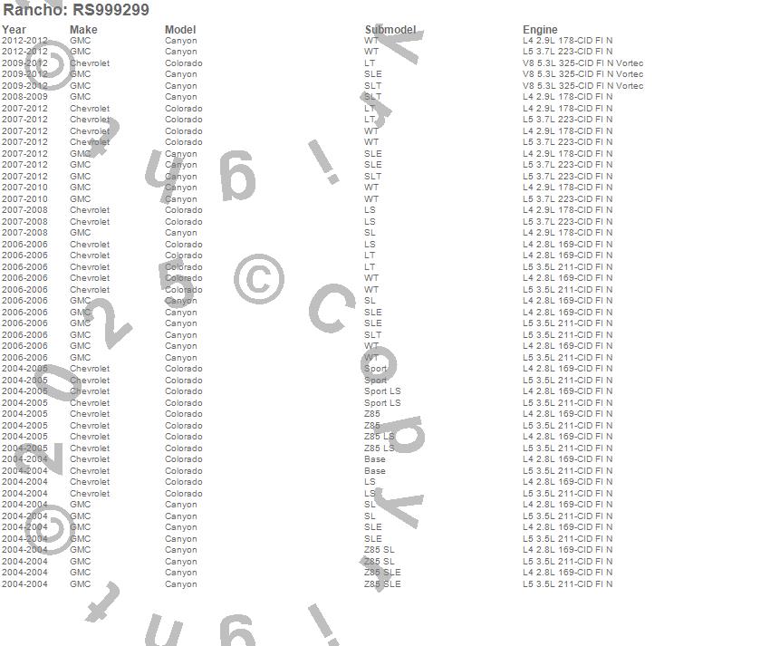 Below is an abbreviated list of applications for the Shock Absorber.