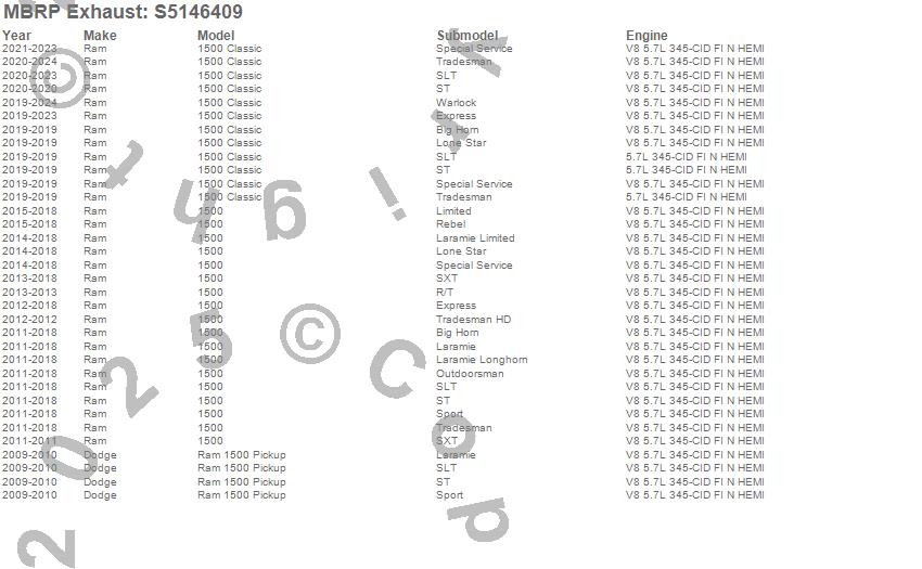 Below is an abbreviated list of applications for the Armor Plus Cat Back Exhaust System.