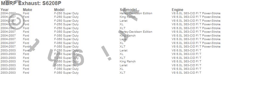 Below is an abbreviated list of applications for the Armor Lite Cat Back Exhaust System.