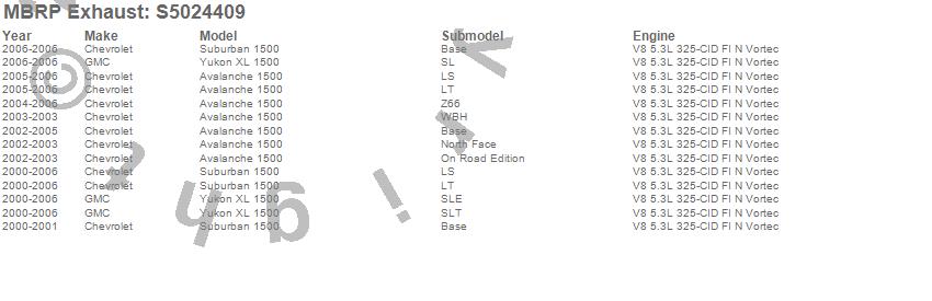 Below is an abbreviated list of applications for the Armor Plus Cat Back Exhaust System.