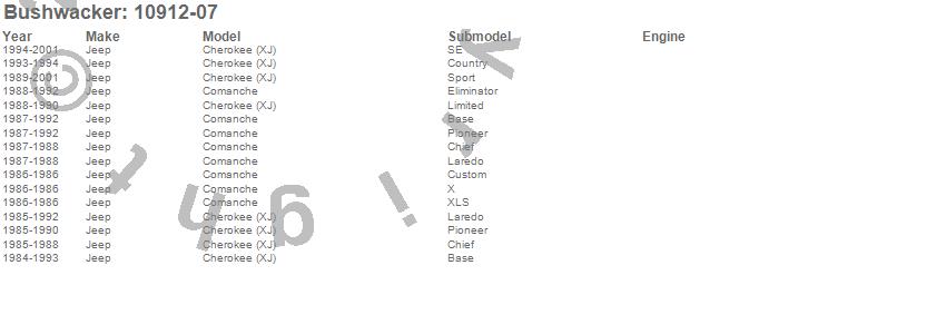 Cherokee (XJ), Comanche, Jeep, 2001, 2000, 1999, 1998, 1997, 1996, 1995, 1994, 1993, 1992, 1991, 1990, 1989, 1988, 1987, 1986, 1985
