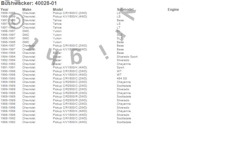 Blazer, C1500 Pickup, C2500 Pickup, K1500 Pickup, R2500 Pickup, Tahoe, Yukon, Chevrolet, GMC, 1999, 1998, 1997, 1996, 1995, 1994, 1993, 1992, 1991, 1990, 1989