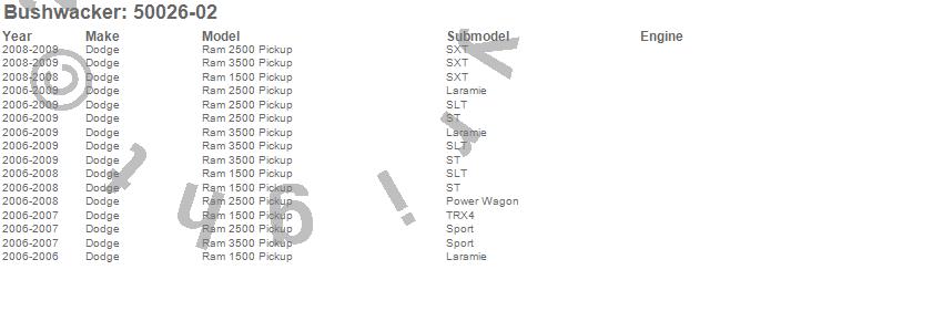 The innovator and creator of the fender flare category, Bushwacker¿ is a U.S. manufacturer of aftermarket and OE automotive accessories. The company specializes in quality products for trucks and Jeeps, utilizing ISO/TS standards with on-site design and tooling resources. Products include fender flares, bedrail caps, tailgate caps, and trail armor. Bushwacker is backed by more than 50 years of innovation and industry-leading customer service.