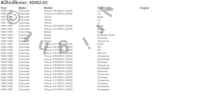 Blazer, C1500 Pickup, C2500 Pickup, K1500 Pickup, R2500 Pickup, Tahoe, Chevrolet, 1999, 1998, 1997, 1996, 1995, 1994, 1993, 1992, 1991, 1990, 1989, 1988