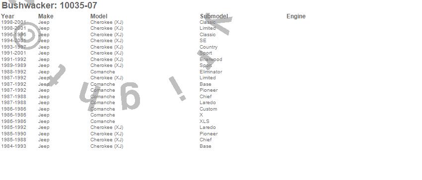 Cherokee (XJ), Comanche, Jeep, 2001, 2000, 1999, 1998, 1997, 1996, 1995, 1994, 1993, 1992, 1991, 1990, 1989, 1988, 1987, 1986, 1985