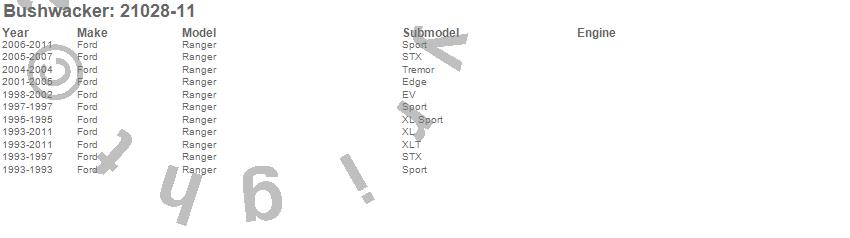 Ranger, Ford, 2011, 2010, 2009, 2008, 2007, 2006, 2005, 2004, 2003, 2002, 2001, 2000, 1999, 1998, 1997, 1996, 1995, 1994