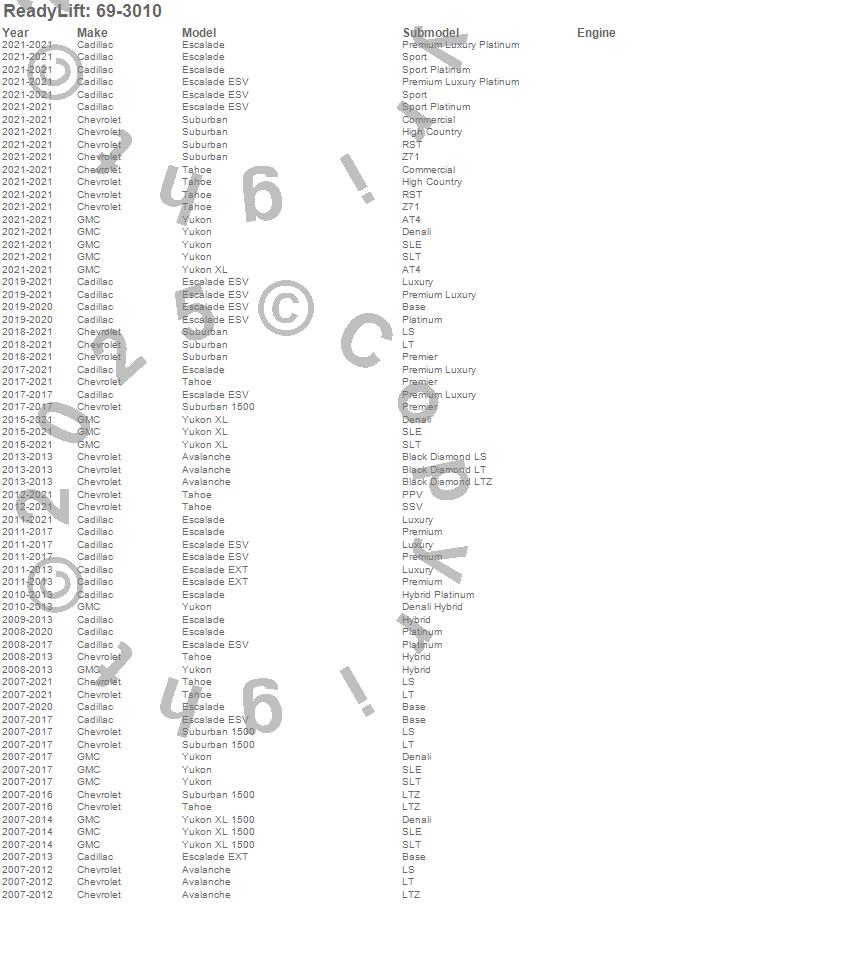 ReadyLift - SST Lift Kit P/N 69-3010 Features: