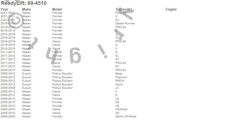 Equator, Frontier, Xterra, Nissan, Suzuki, 2021, 2019, 2018, 2017, 2016, 2015, 2012, 2011, 2010, 2009, 2008, 2007, 2006, 2005