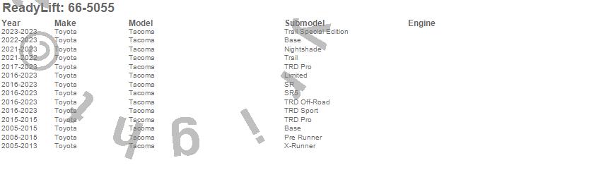 ReadyLift - Front Leveling Kit P/N 66-5055 Features:
