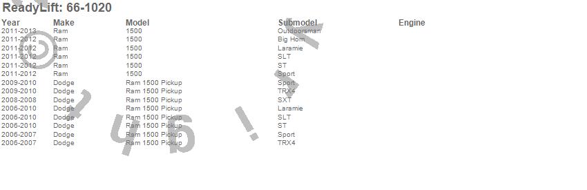 Below is an abbreviated list of applications for the Front Leveling Kit.