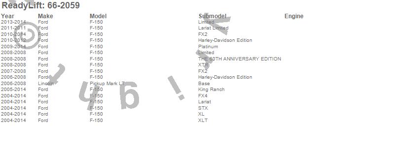 Below is an abbreviated list of applications for the Front Leveling Kit.