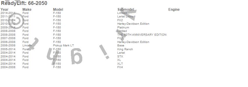 Below is an abbreviated list of applications for the Front Leveling Kit.