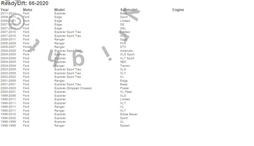 Below is an abbreviated list of applications for the Front Leveling Kit.
