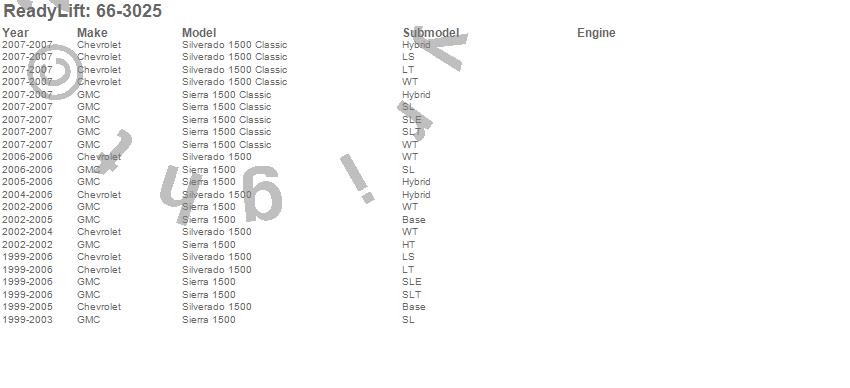Below is an abbreviated list of applications for the Front Leveling Kit.