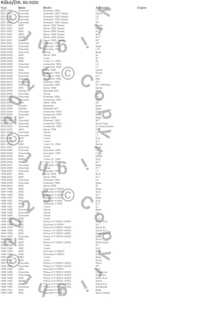 Below is an abbreviated list of applications for the Front Leveling Kit.