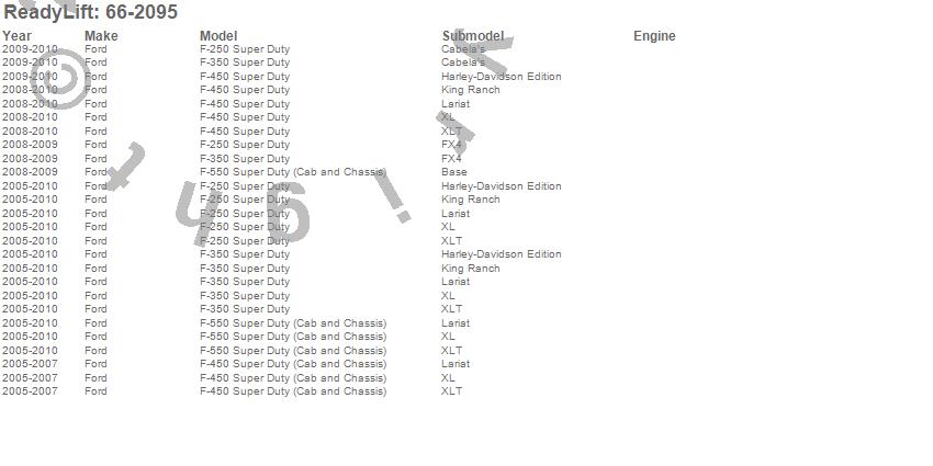 Below is an abbreviated list of applications for the Front Leveling Kit.