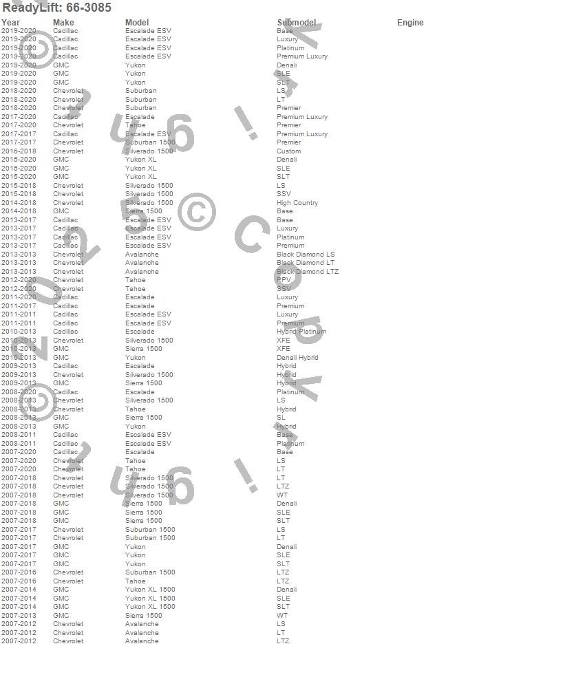 Below is an abbreviated list of applications for the Front Leveling Kit.