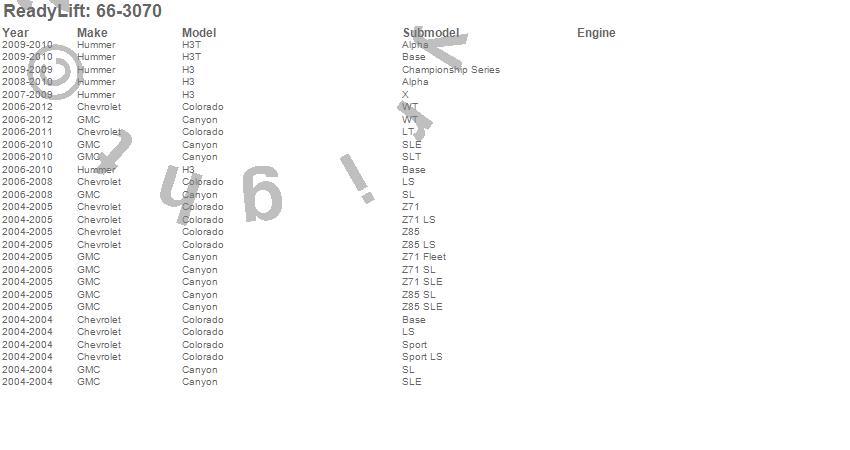 Below is an abbreviated list of applications for the Front Leveling Kit.