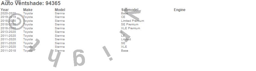 Below is an abbreviated list of applications for the Ventvisor Deflector 4 pc..