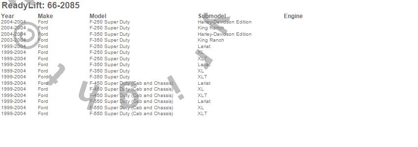 Below is an abbreviated list of applications for the Front Leveling Kit.