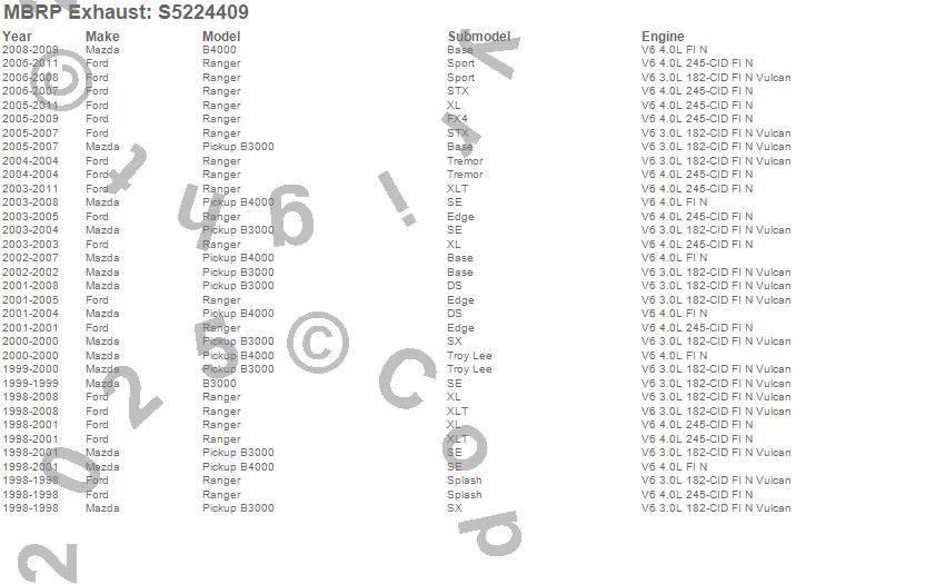Below is an abbreviated list of applications for the Armor Plus Cat Back Exhaust System.