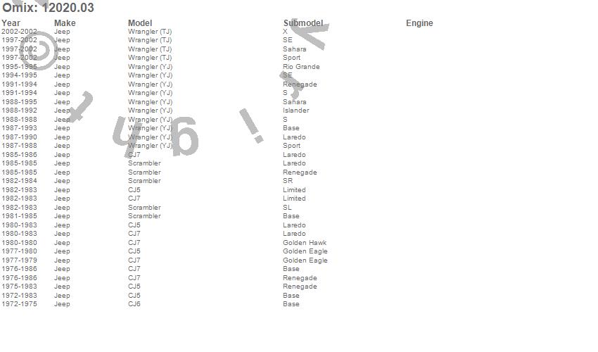 CJ5, CJ6, CJ7, Scrambler, Wrangler (TJ), Wrangler (YJ), Jeep, 2002, 2001, 2000, 1999, 1998, 1997, 1995, 1994, 1993, 1992, 1991, 1990, 1989