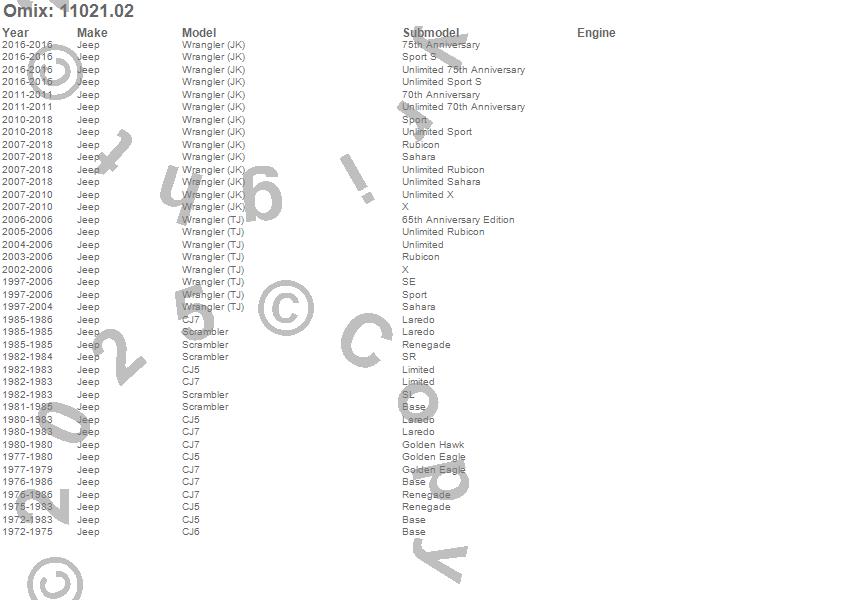 CJ5, CJ6, CJ7, Scrambler, Wrangler (JK), Wrangler (LJ), Wrangler (TJ), Jeep, 2018, 2017, 2016, 2015, 2014, 2013, 2012, 2011, 2010, 2009, 2008, 2007
