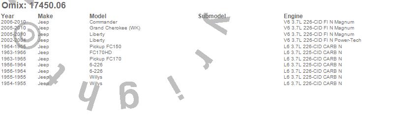 6-226, Commander, FC150, FC170, FC170HD, Grand Cherokee (WK), Liberty, Willys, Jeep, 2010, 2009, 2008, 2007, 2006, 2005, 2004, 2003, 2002, 1966, 1965