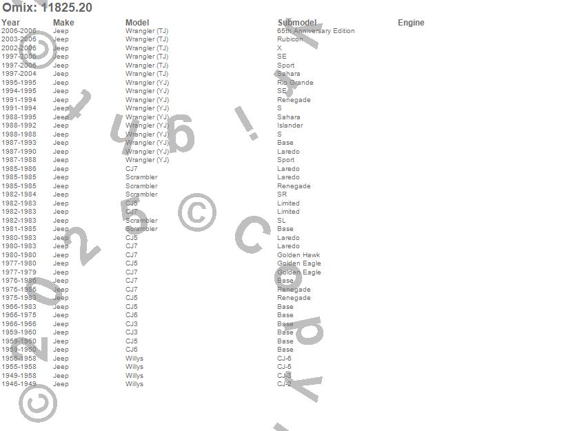 CJ3, CJ5, CJ6, CJ7, Scrambler, Willys, Wrangler (TJ), Wrangler (YJ), Jeep, 2006, 2005, 2004, 2003, 2002, 2001, 2000, 1999, 1998, 1997, 1995