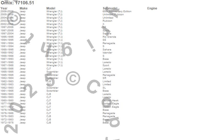 CJ5, CJ6, CJ7, Scrambler, Wrangler (LJ), Wrangler (TJ), Wrangler (YJ), Jeep, 2006, 2005, 2004, 2003, 2002, 2001, 2000, 1999, 1998, 1997, 1995, 1994