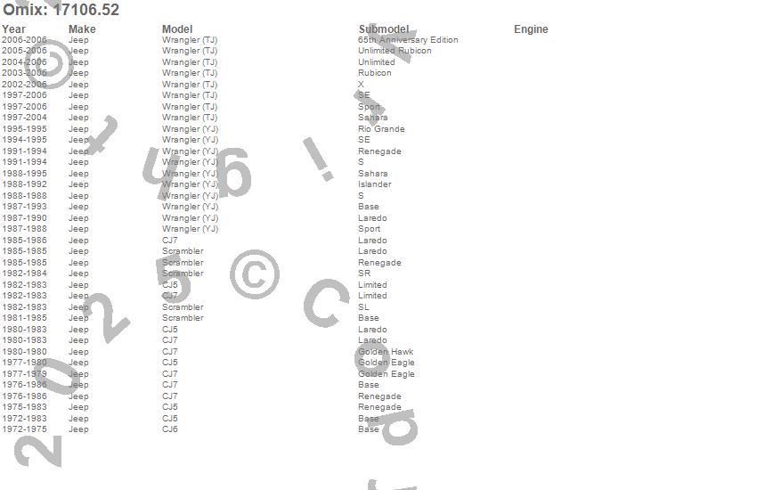 CJ5, CJ6, CJ7, Scrambler, Wrangler (LJ), Wrangler (TJ), Wrangler (YJ), Jeep, 2006, 2005, 2004, 2003, 2002, 2001, 2000, 1999, 1998, 1997, 1995, 1994
