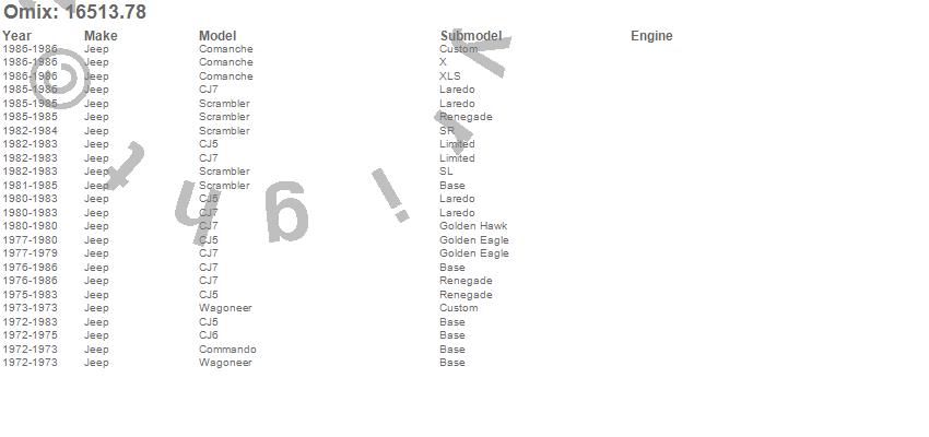 CJ5, CJ6, CJ7, Comanche, Commando, Scrambler, Wagoneer, Jeep, 1986, 1985, 1984, 1983, 1982, 1981, 1980, 1979, 1978, 1977, 1976, 1975
