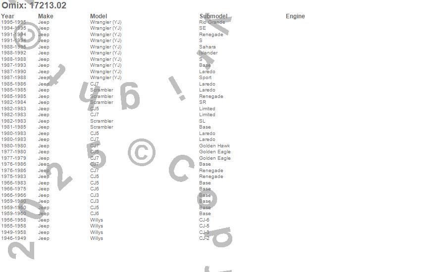 CJ3, CJ5, CJ6, CJ7, Scrambler, Willys, Wrangler (YJ), Jeep, 1995, 1994, 1993, 1992, 1991, 1990, 1989, 1988, 1987, 1986, 1985, 1984