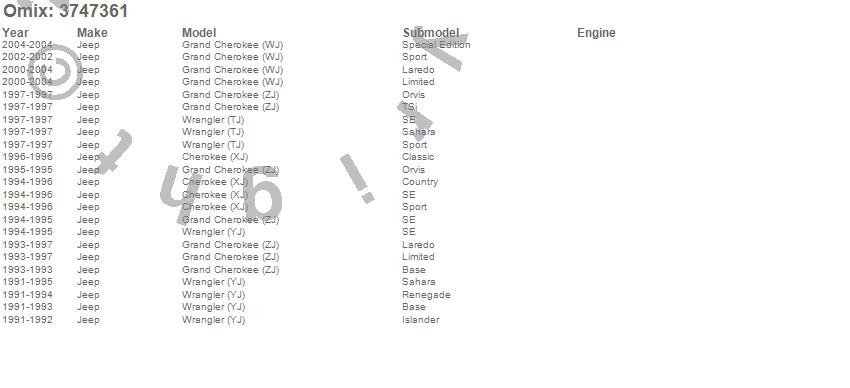 Cherokee (XJ), Grand Cherokee (WJ), Grand Cherokee (ZJ), Wrangler (TJ), Wrangler (YJ), Jeep, 2004, 2003, 2002, 2001, 2000, 1997, 1996, 1995, 1994, 1993, 1992, 1991