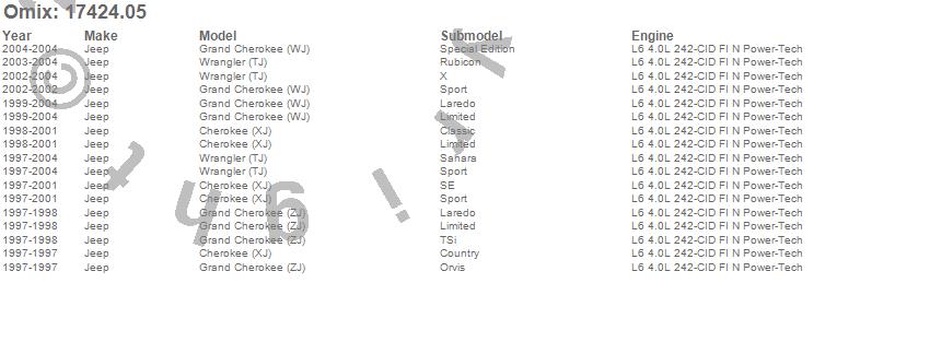 Cherokee (XJ), Grand Cherokee (WJ), Grand Cherokee (ZJ), Wrangler (TJ), Jeep, 2004, 2003, 2002, 2001, 2000, 1999, 1998, 1997