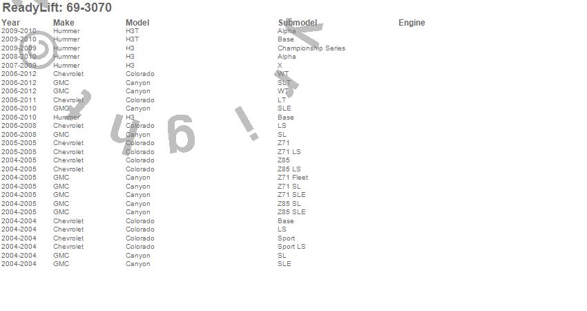 Below is an abbreviated list of applications for the SST Lift Kit.