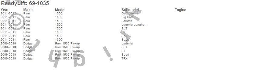 ReadyLift - SST Lift Kit P/N 69-1035 Features: