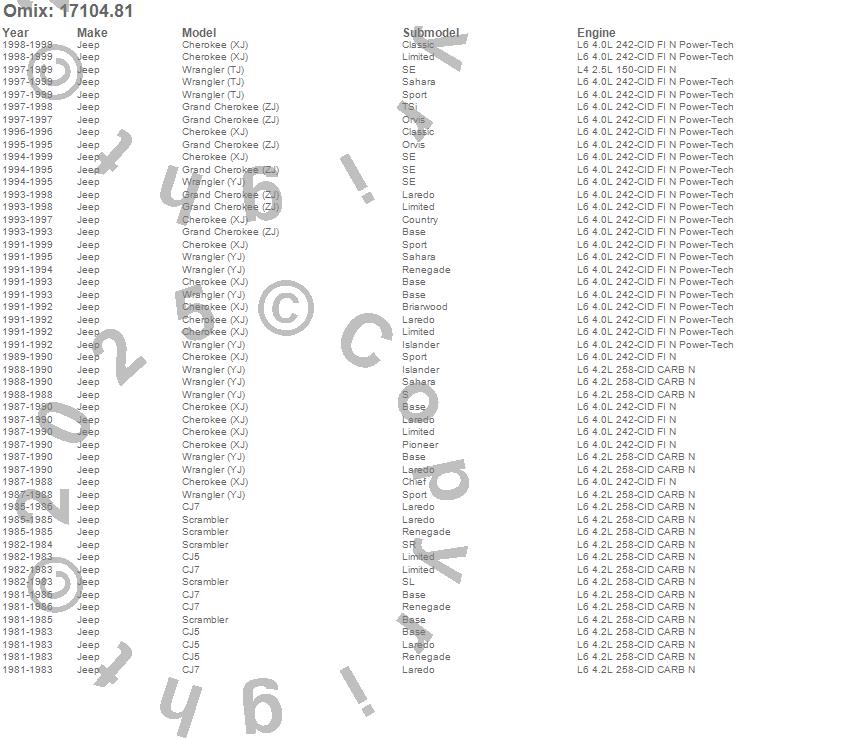 Cherokee (XJ), CJ5, CJ7, Grand Cherokee (ZJ), Scrambler, Wrangler (TJ), Wrangler (YJ), Jeep, 1999, 1998, 1997, 1996, 1995, 1994, 1993, 1992, 1991, 1990, 1989, 1988