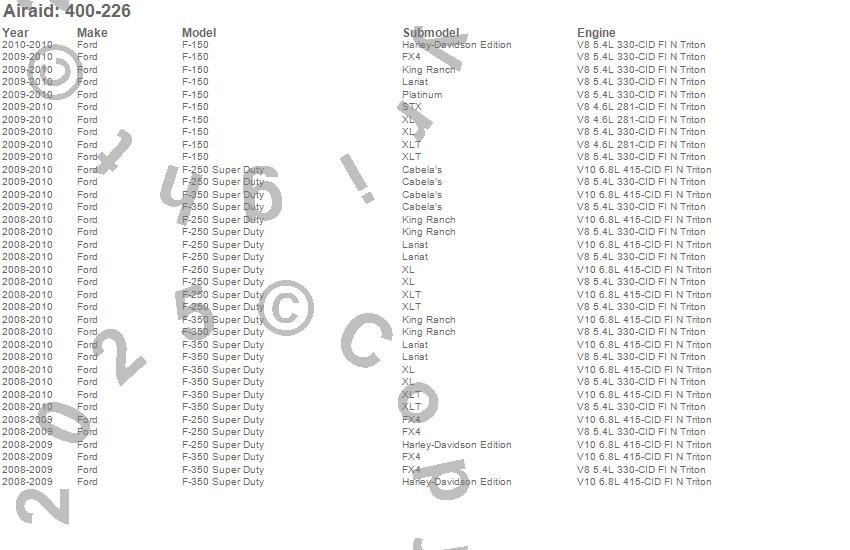 Below is an abbreviated list of applications for the AIRAID Air Box Cold Air Intake System.