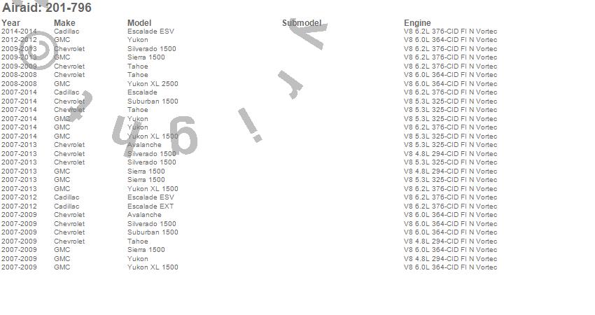 Below is an abbreviated list of applications for the AIRAID Jr. Air Intake Tube Kit.