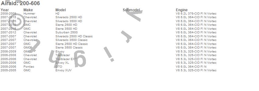 Envoy, Envoy XL, Envoy XUV, GTO, H2, Sierra 2500 HD, Sierra 2500 HD Classic, Sierra 3500 Classic, Sierra 3500 HD, Silverado 2500 HD, Silverado 2500 HD Classic, Silverado 3500 Classic, Silverado 3500 HD, Suburban 2500, Trailblazer, Trailblazer EXT, Chevrolet, GMC, Hummer, Pontiac