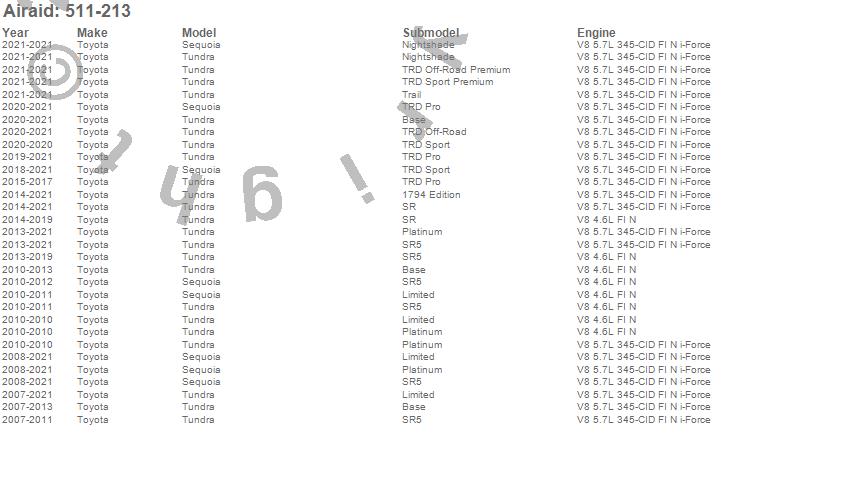 Below is an abbreviated list of applications for the AIRAID Cold Air Dam Air Intake System.