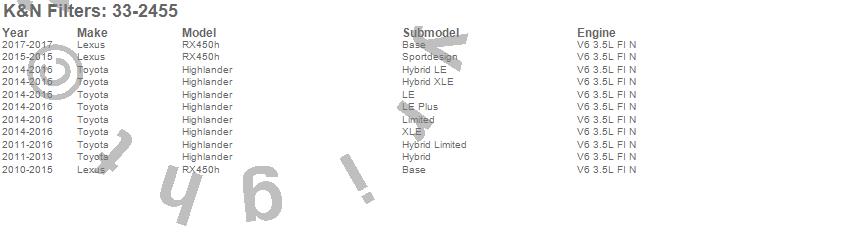 K&N Filters - Air Filter P/N 33-2455 Features: