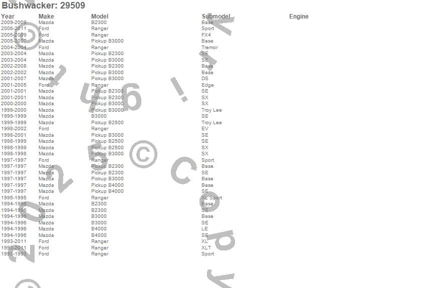 B2300, B2500, B3000, B4000, Ranger, Ford, Mazda, 2011, 2010, 2009, 2008, 2007, 2006, 2005, 2004, 2003, 2002, 2001, 2000, 1999